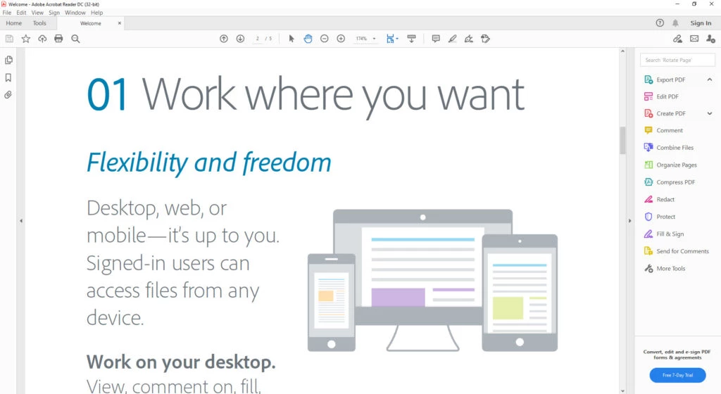 It is available for free to users who want a PDF tool to use on a personal level; it will help the users get free services and manage their PDF files within seconds. If you create a free account with Adobe Document Cloud, it will provide 5GB of free storage as well.