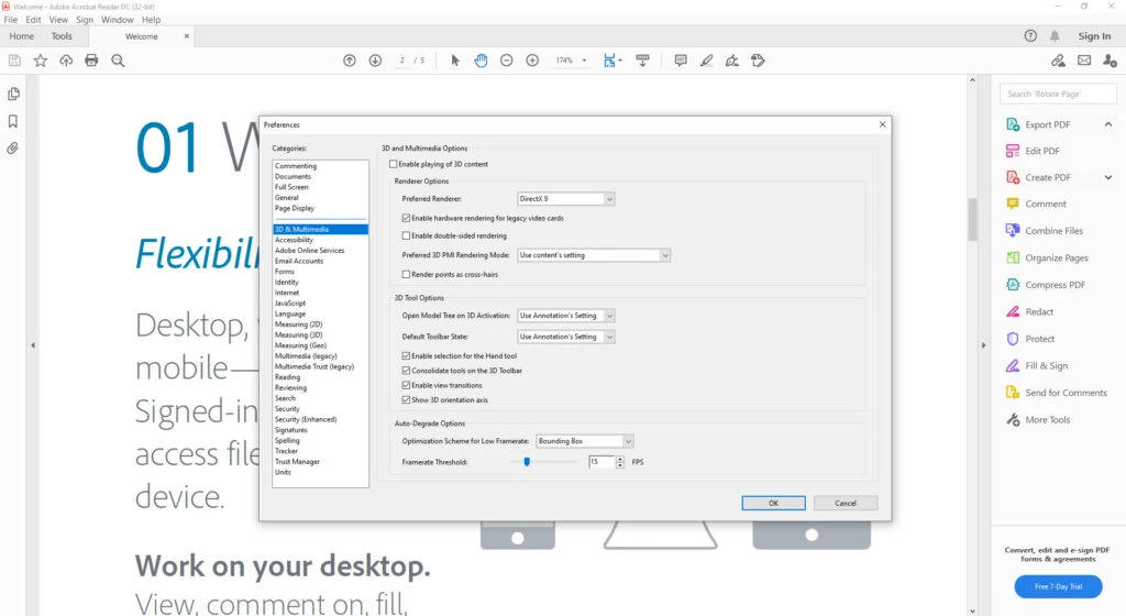 Adobe Acrobat Reader DC developed and launched by Adobe is one of the leading PDF readers across the world. It helps to open and interact with PDF files including multimedia, forms, etc. The integration with Adobe Document Cloud services enables the users to continue their workflow using any available device, from anywhere.